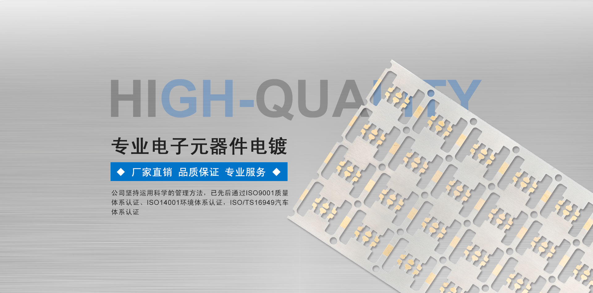• 公司專業(yè)提供精密電子元器件的電子電鍍、電鍍金、電鍍銀、電鍍鎳、電鍍銅、電鍍錫、IGBT電鍍模塊、板材電鍍、連續(xù)電鍍、線材電鍍、回流錫等加工服務(wù)。